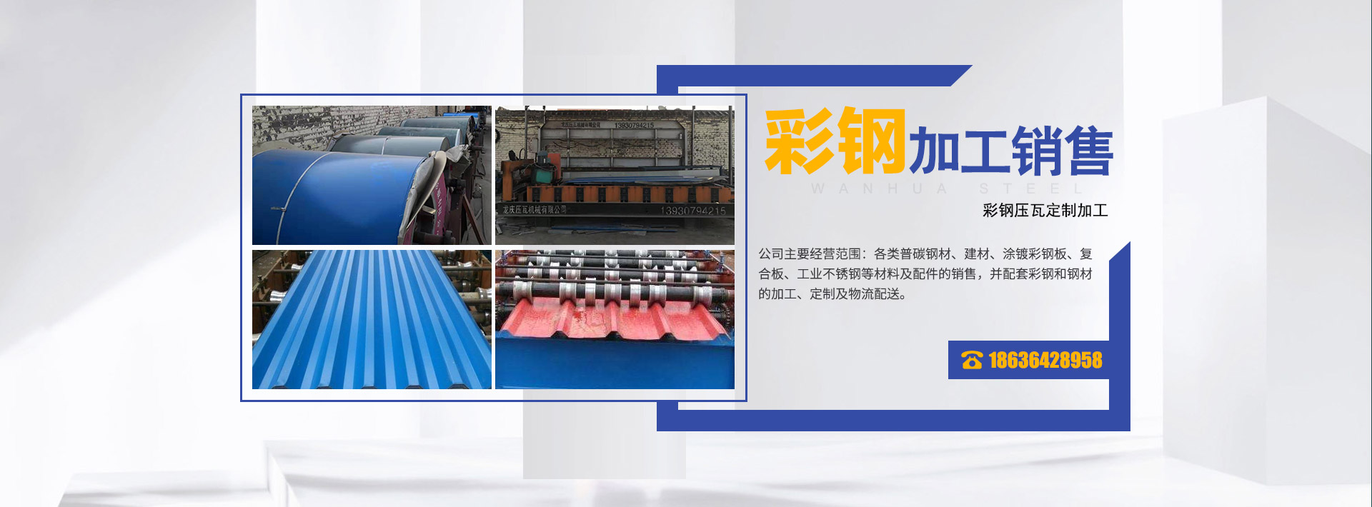 孝義市萬華鋼材銷售有限公司(含彩鋼、鋼材加工)成立于2014年12月(前身為萬華鋼材經銷門市部),是一家集鋼材、彩鋼的銷售、加工、定制、物流配送為一體的專業化企業,注冊資金5...